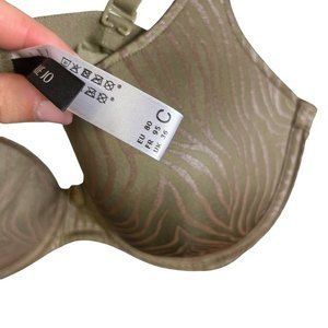 Marie Jo green zebra print under wire padded L’Aventure Tom bra with embroidered dot convertible straps. Gently used. Size 36C