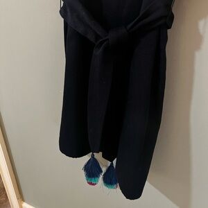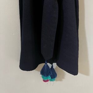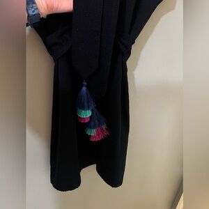 This chic Marie Oliver dress is perfect for a cocktail occasion, featuring a sleeveless design with a flattering V-neckline. The sheath silhouette is enhanced by a stylish Dolman sleeve, offering a modern and elegant look. Crafted in a rich blue hue, it includes a decorative belt adorned with vibrant tassels, adding a playful touch to its sophisticated design.