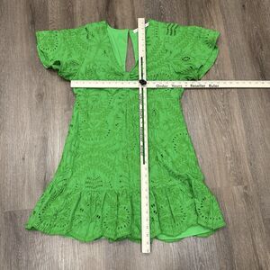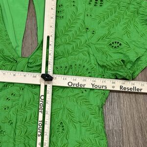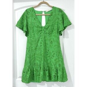 Marie Oliver Dress Womens 10 Green Eyelet Embroidered Flutter Sleeve Ruffle