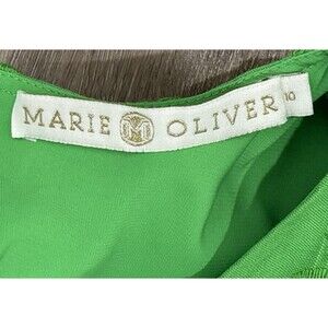 Beautiful green embroidered eyelet dress by Marie Oliver, size 10. Please see photos for measurements, and please compare them to those of a similar dress that fits you well. It's approximately mini or knee length, depending on your height.