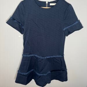 Marie Oliver Jillian Navy Blue Textured Fringe Detail Short Sleeve Dress XXS