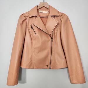 Marie Oliver Maeve Moto Jacket Vegan Leather in Beige Blush, S