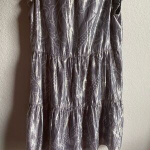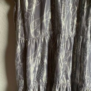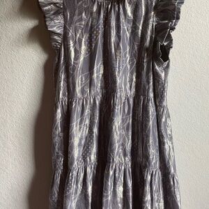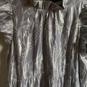 Marie Oliver Silver Metallic Printed Tent Babydoll Tiered Ruffle Sleeves Retro Coquette Dress