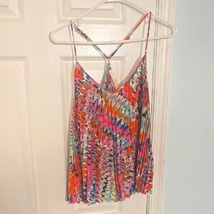 This relaxed camisole by Marie Oliver features a pleated design in vibrant red and pink hues. The backless style adds a touch of elegance, making it a standout piece for any occasion. With its light and flowy fabric, this top is perfect for a breezy, summery look.