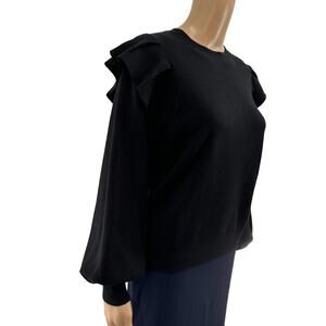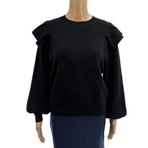 Marie Oliver Remi Black Puff Sleeve Popover Pullover Sweater
