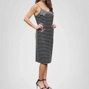 Marie Oliver Sequin Slip Dress Midi Cocktail Black White Summer Party Date Night