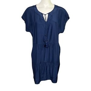 Marie Oliver Silk Navy Blue Keyhole Boxy Shift Tiered Mini Dress Size Medium