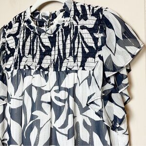 Marie Oliver Silk Sami Blouse Medium top tropical floral metallic shimmer flowy work office career dressy shirt neutral lightweight