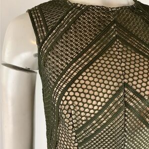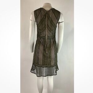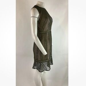 Marie Oliver Sz 6 Lace Nude Cocktail Party Fit & Flare Dress Green Polyester