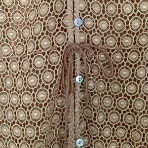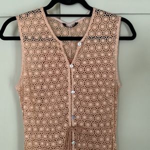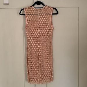 Beautiful simple lace peach color dress with slip & belt. Worn once in great condition. Dry clean only