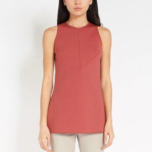 The fitted Lares tank from Marie Saint Pierre is crafted in a fine Rose pink scuba, and features a sleeveless design, a round neckline, an invisible front zip closure, panelling on the front bust, and a raw edge hem.
