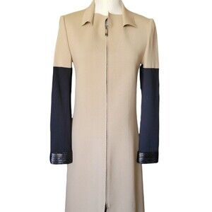 Marie Saint Pierre Women's Coat Blazer Zip Up Contrast Long Sleeve Beige Size 1