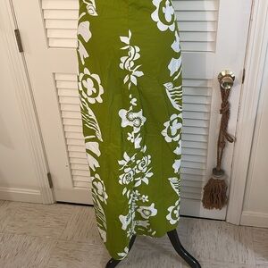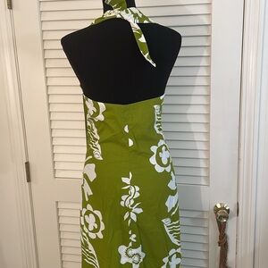 Marie ah you Couture Floral Green Hawaiian White Wrap Over Halter Dress