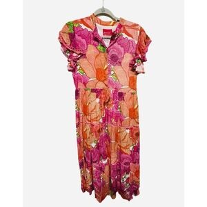 Turn heads in this stunning Marie by Victoria Dunn maxi dress—brand new with tags! Featuring an eye-catching large floral print in vibrant shades of pink, orange, and green, this dress is perfect for resort getaways, garden parties, or brightening up your everyday wardrobe.