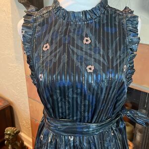 Formal, metallic, floral, cocktail party, wedding guest, holiday dress