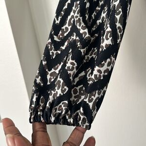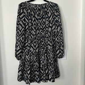 EUC B&W textured dress with v-neck, elastic waist and tiered bottom.