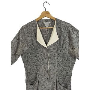 Mariella Burani Gray 3/4 Sleeve Mini Dress Size 12 Collared Smocked Button Front