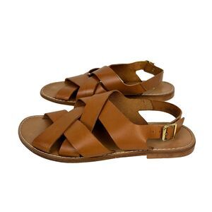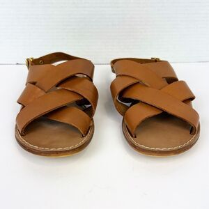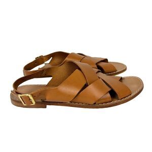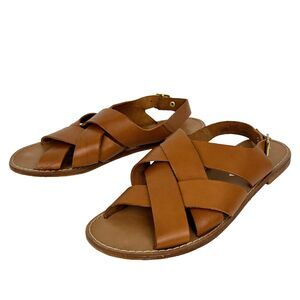 Mariella Cognac Tan Woven Flat Ankle Strap Sandals Leather Shoes Boho Casual 8