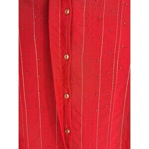 The Marigold Lane Red Gold Striped Tunic in size XL is a stylish and versatile piece perfect for various occasions. This 3/4 sleeve blouse features a round neck and button closure, with a unique striped pattern and beaded accents adding a touch of flair. Made from breathable cotton, this tunic is suitable for all seasons and offers a comfortable fit for women looking for a chic and relaxed look. Perfect for travel, parties, casual outings, or formal events, this tunic combines artistry and comfort effortlessly.