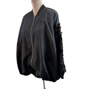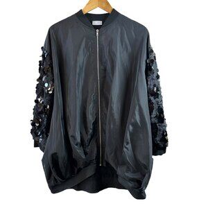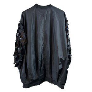 Marigold Shadows Black Oversized Sequin Sleeve Bomber Jacket Women’s OS One Size
