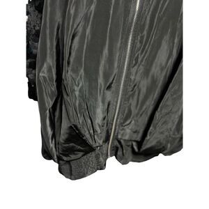 Hard to capture in pictures! Made of a polyester blend and has the feel of a raincoat. Features a netted lining, front zipper, fully sequin sleeves with ribbed cuffs and ribbed neckline. The bottom hem has some pleats in it to give it more of a tapered feel could be worn as a jacket or as a dress and is extremely oversized. Laying flat measures 29" from pit to pit, and about 30" shoulder to hem in the front, and 34" shoulder to hem in the back.