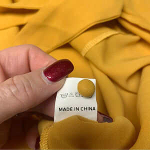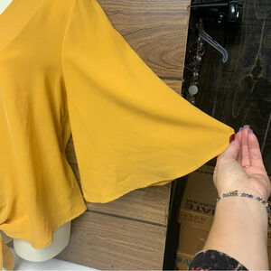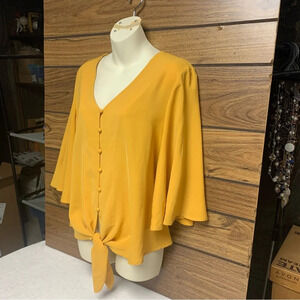 Marigold colored bell sleeve shirt size large button down front tie no brand