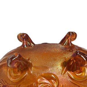 - Gorgeous Carnival Glass footed oval oblong marigold bowl