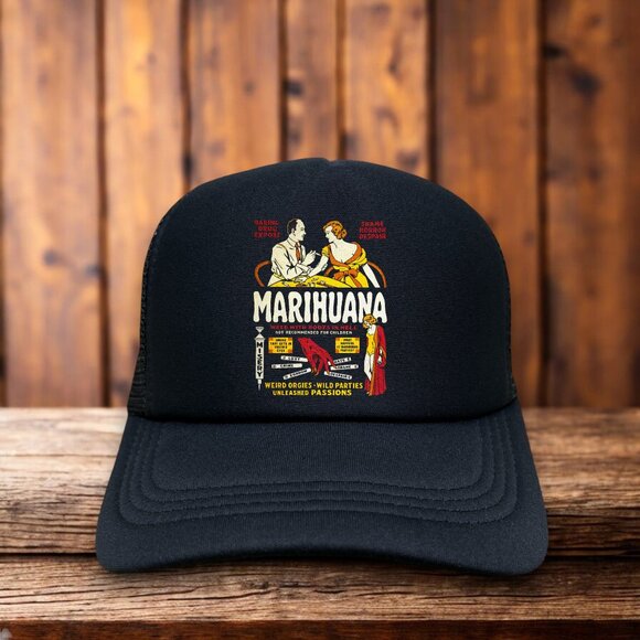 Marihuana Unisex Trucker Hat Black Snapback Reefer Madness Vintage Anti-Drug Cap