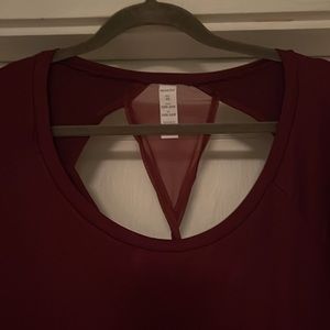 Marika 3x, Maroon, Long Sleeve Activewear Top with Twisted Back Design, MWT