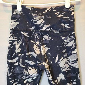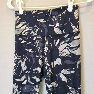Beautiful Marika Balance Collection blue floral pattern leggings. The inside label has worn off, but they are an XS. The outside logo is still there. Laying flat the waist measures 11 3/4", they have a 10" front rise and a 26 1/2" inseam. It's a beautiful dark blue and gray stained glass / floral type pattern. They are in great condition.