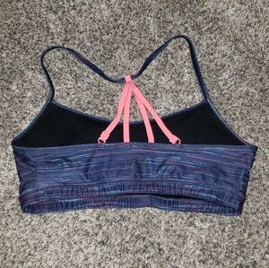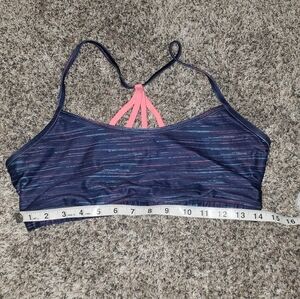 Stylish Marika sports bra. Navy with pink accents. Comfortable and supportive.
