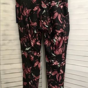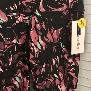 Women’s Black Floral Leggings by Marika. Size Large. High Rise with Side Pockets. Measurements: Waist 26”, Length 34”, Inseam 25”. Polyester/Spandex. NWT.
