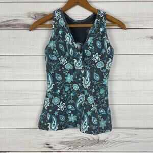 Stylish Marika tank top. Features a floral and paisley print. Perfect for casual wear.