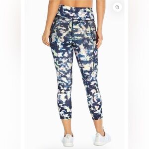 Marika Ignite Side Pocket Mid Calf Capri legging in Black Iris Watercolor Camo