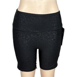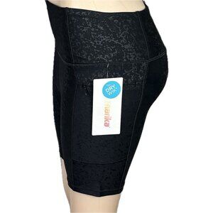 Marika L Black Emboss High Waistband Side Zip Cell Pocket Dry Wik Bike Shorts