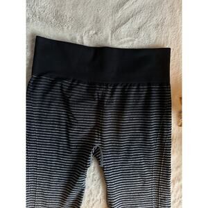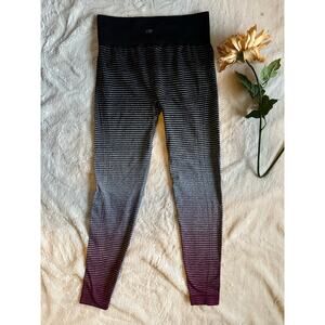 Ombre' Marika Leggings sike large. Comfortable with wide waist band and fun black, gray, maroon gradient coloring.
