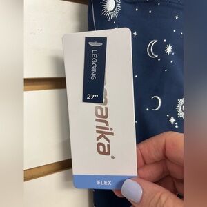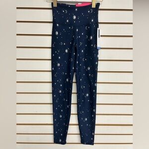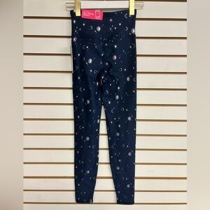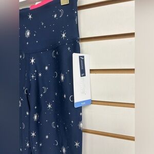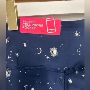 Marika Leggings Silver Foil Night Sky Mixed Moon XS Cell Phone Pocket NWT Flex