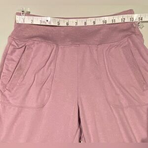 Super soft joggers from Marika in a mauve or lavender color with two front pockets. Gently worn. Size L.