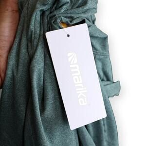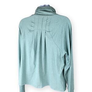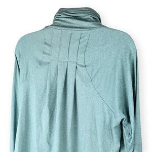 Marika Sea Green Heathered High Neck Activewear Knit Top L NWT. Turtleneck, long-sleeved, gathered back. Relaxed, smocked hit.