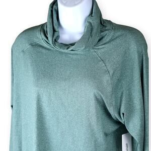 Marika Sea Green Heathered High Neck Activewear Knit Top L NWT