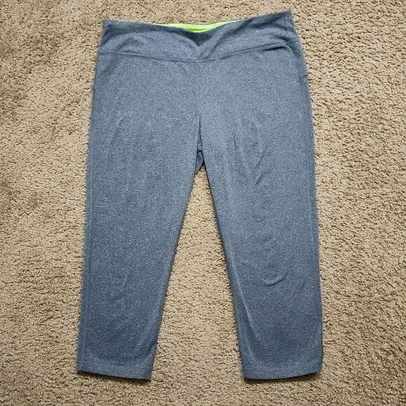 Elevate your workout wardrobe with these pre-owned Marika sports capri leggings in a versatile gray color. They are in great condition and designed for women in a size large, these leggings are perfect for any active occasion. The capri style and compression area targeting the leg muscles make them ideal for a variety of sports and activities. Crafted with high-quality materials, these leggings offer both comfort and style. The Marika brand is known for its activewear and these leggings live up to the company's reputation. Whether you're hitting the gym or going for a run, these leggings will keep you looking and feeling great.