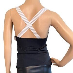 Marika Swim Tank Top Size Small Strappy Back UPF 50 Black White DryWik
