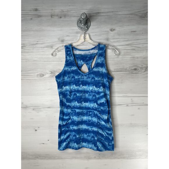 Marika Tank Top Shirt Womens Large Blue Racerback Built In Bra Athletic Workout