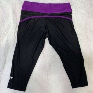 Marika Tek Cropped Workout Yoga Legging Pants - Black/Purple, Sz L Poly/Spandex