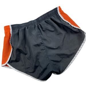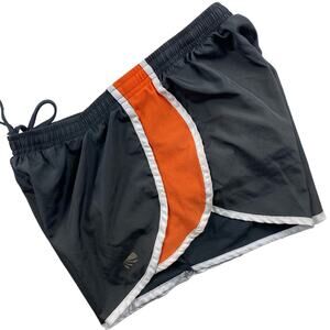 Marika Tek Running Shorts High Rise Brief Lined Dark Gray Orange Mesh with Drawstring Closure Womens Size Small