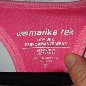 Marika Tek Women's Pink Mesh Dry Wik Performance Wear Activewear Tank Top in size Small. GUC. No stains or holes, but front does have a couple of fabric snags (pictured). Still a functional tank. Color is pink with a white mesh overlay. Back of tank has hot pink on the sides.