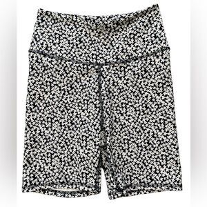 Marika Tek The Balance Collection Daisy print high waisted compression shorts. 4” waistband, very soft. No size or content tags. Black background with white daisy print. Approximate measurements are waist 13”, rise 12”, inseam approximately 7”.