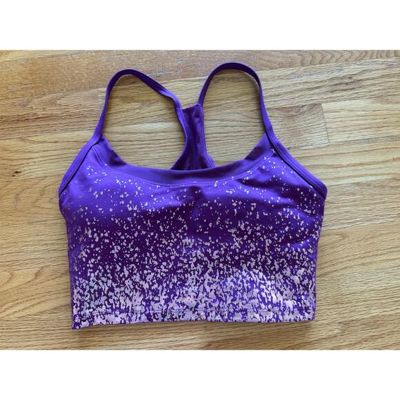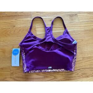 You are viewing a brand new Marika Women's Medium Support Sports Bra in Purple Glitter, Size S. This stylish and comfortable sports bra is perfect for yoga, fitness, or everyday activewear.