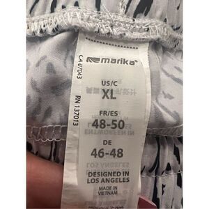 White with block dot pattern women’s running shorts.  Size XL.  Front pockets and small side rear zip pocket to carry a card small wallet or keys and zip to keep from falling out.  Like new condition. Elastic with draw string waist.