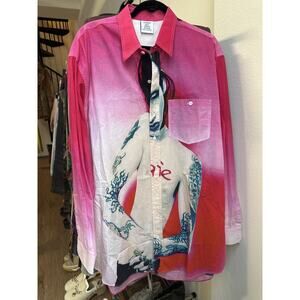 Super rare. A beautifully colored button down shirt. With hues of red pink blue and cream. Oversized! Tagged a Small but fits up to size Large!